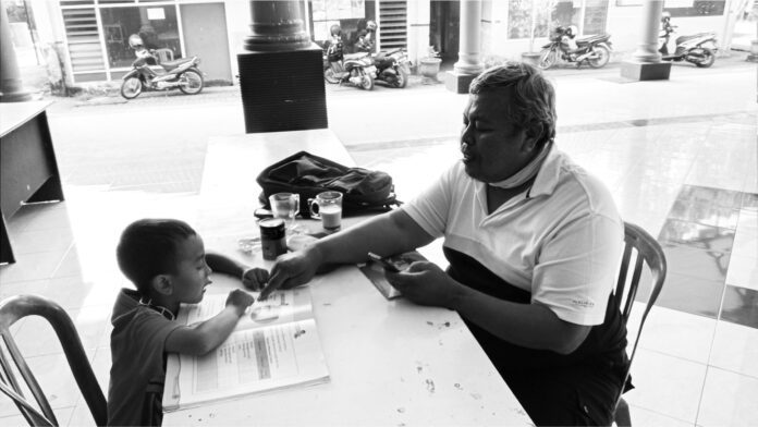 Kab Malang, IP – Sudah lebih dari satu minggu Ramad Zanuar Wijaya, siswa kelas 1 sekolah dasar (SD), bersama ayahnya, rutin datang ke Balai Desa Kebonagung, Kecamatan Pakisaji, Kabupaten Malang. Alasan untuk mengunjungi balai desa, bukan untuk bermain atau sekadar bertemu dengan anak-anak seusianya. Tetapi agar gadget milik orangtua yang dia pakai untuk mengerjakan tugas sekolah online (daring) dapat terkoneksi dengan WiFi yang ada di Balai Desa Kebonagung.