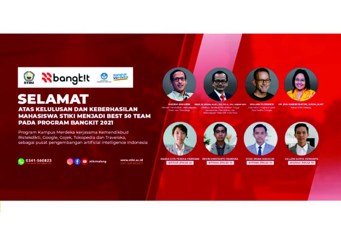 Malang, IP – Empat Mahasiswa Sekolah Tinggi Informatika dan Komputer Indonesia Malang (STIKI Malang) berhasil lolos pada urutan 20 besar, dalam Program Bangkit 2021 besutan Kemenristekdikti.