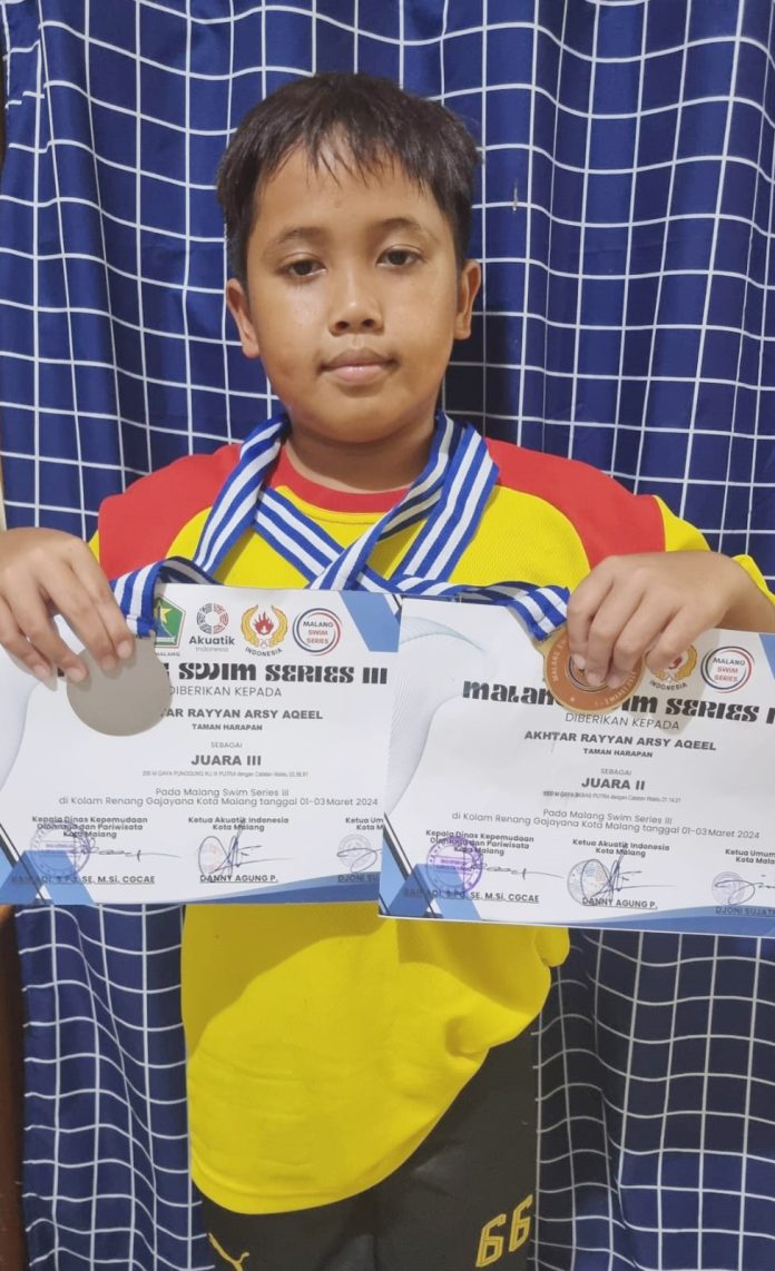Malang, IP – Akhtar Rayyan Arsy Aqeel atau yang biasa dipanggil Akhtar, siswa kelas V SDN Purwantoro 1 ini gemar menjuarai berbagai perlombaan di bidang olahraga renang. Dengan umurnya yang masih dini, Akhtar sudah beberapa kali membawa prestasi baik bagi dirinya atau sekolah.