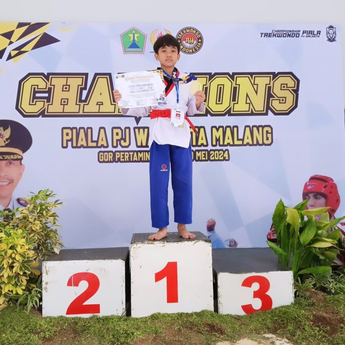 Malang, IP – Dyandra Kenzie, siswa kelas VIII SMPN 5 Malang berhasil menjuarai Poomsae Cadet Putra pada Piala PJ Walikota Malang sebagai juara I. Acara ini diselenggarakan pada Sabtu, 18 Mei 2024 di GOR Pertamina Universitas Brawijaya.